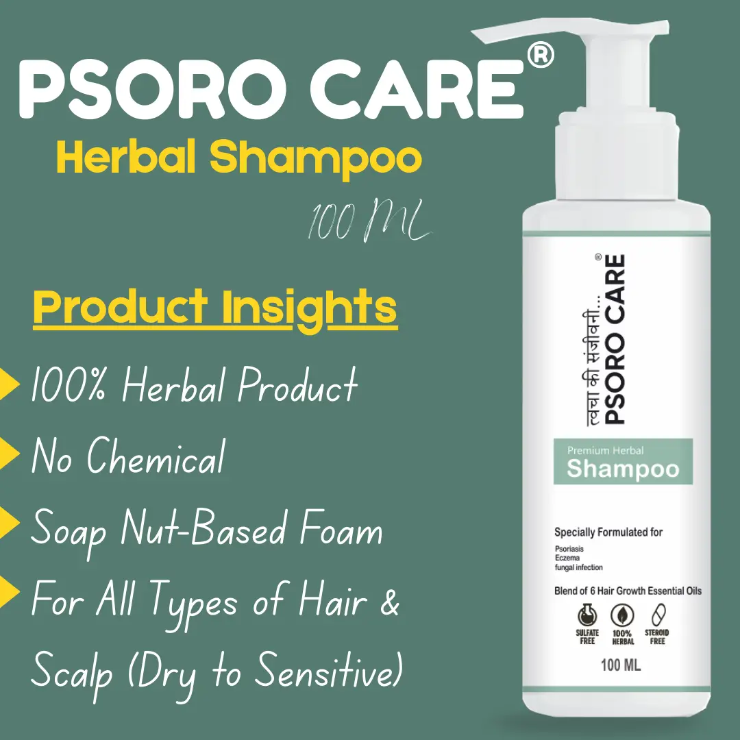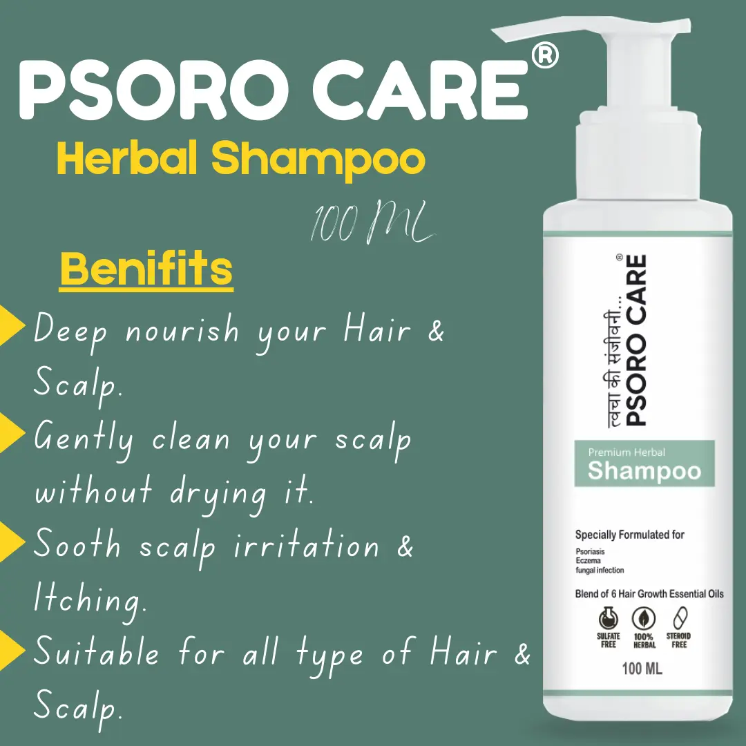 Psoro Care Herbal Shampoo is specially made for Psoriasis, Eczema, Fungal infections and all types of sensitive to dry scalp | 100 ML (Pack of 1)